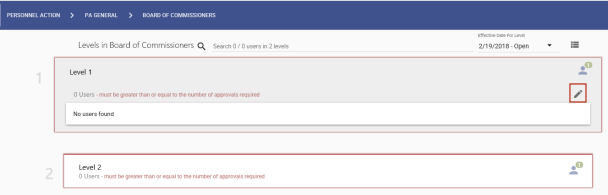 Edit Approval Levels dialog opens. - Make your edits.