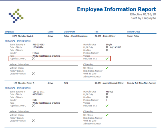 Paperless W-2 and 1095-C statuses have been added to the ClosedEmployee Information Report.
