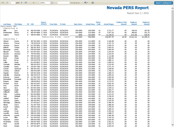 Nevada PERS Report has been modified to sort by Agency Number, followed by Employee Group.