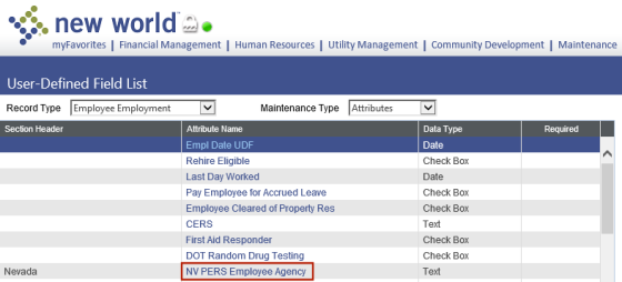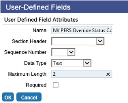- Select a Section Header if you have created one for Nevada PERS UDFs to appear under; otherwise, leave the field blank.