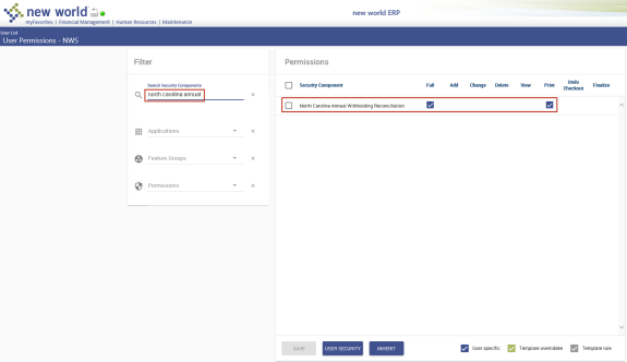 North Carolina Annual Withholding Reconciliation security component only. - Select Full permission.