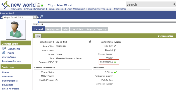 The column is populated based on whether employees have the Paperless W-2 check box selected in the