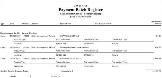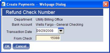 3. Click OK to create the refund payments. If centralized check processing is used, the check is processed there. Otherwise, it is processed in the next workflow step, Payment Processing. The Payment Register is sent to myReports.