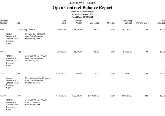 The Open Contract Balance Report provides a means to review the balances for contracts currently in process in the system.