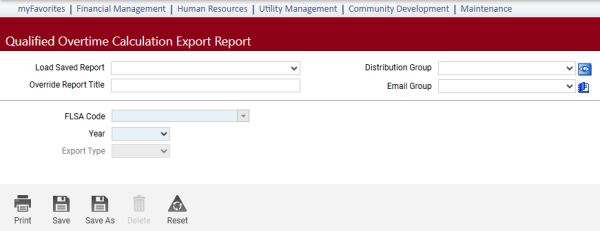 Human Resources > Reports > Management Reports > Qualified Overtime Calculation Export