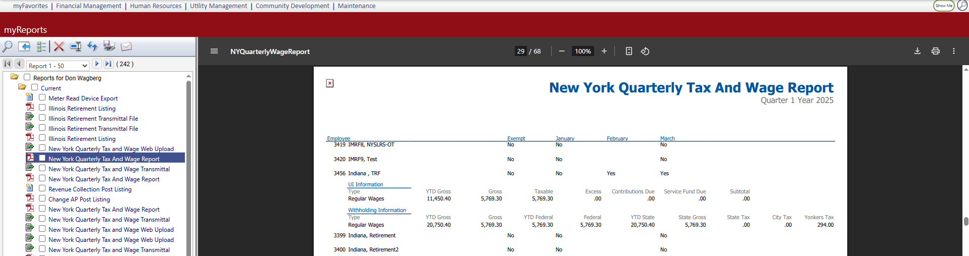 Use this page to generate a report and transmittal file of quarterly tax and wage information to be filed with the state of New York each quarter.