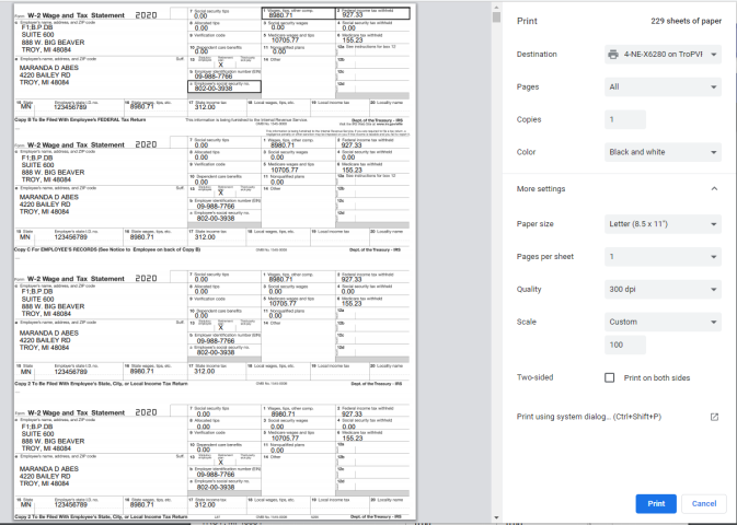 Print W-2 Form