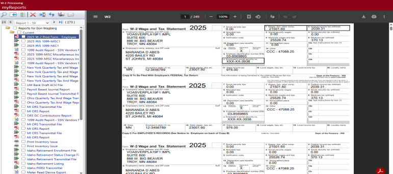 After making your entries, click Print to send the file of W-2 forms to myReports.