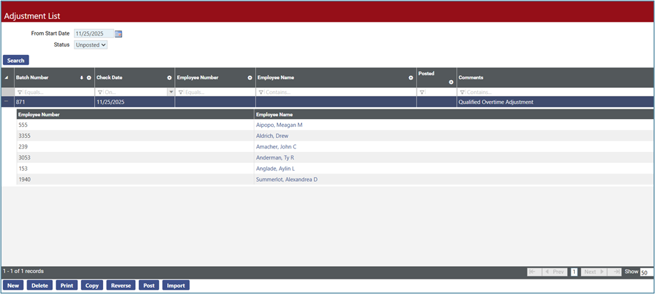 - Using the Adjustment Import process, import that file to update the employee with their qualified overtime amount.
