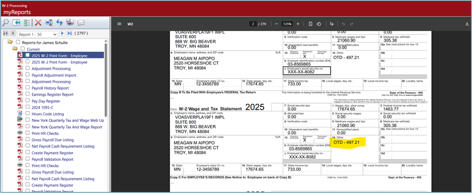 - In Box 14 of the Form W-2, using a descriptive label like "OTD" for “Overtime Deduction."