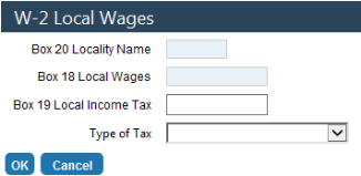| Box 19 Local Income Tax | Total dollar amount of employee's local income tax. If this field is left blank, an entry of $0.00 displays on the list page. |