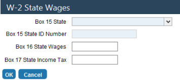 | Box 15 State | Required. State to be used for this employee. All states are available on the drop-down. |