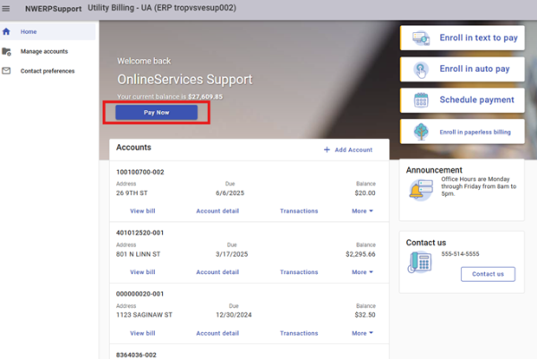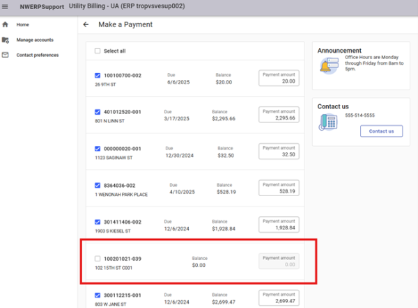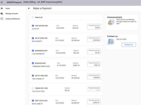 Follow the steps below to make a payment on multiple accounts via UtilityAccess: