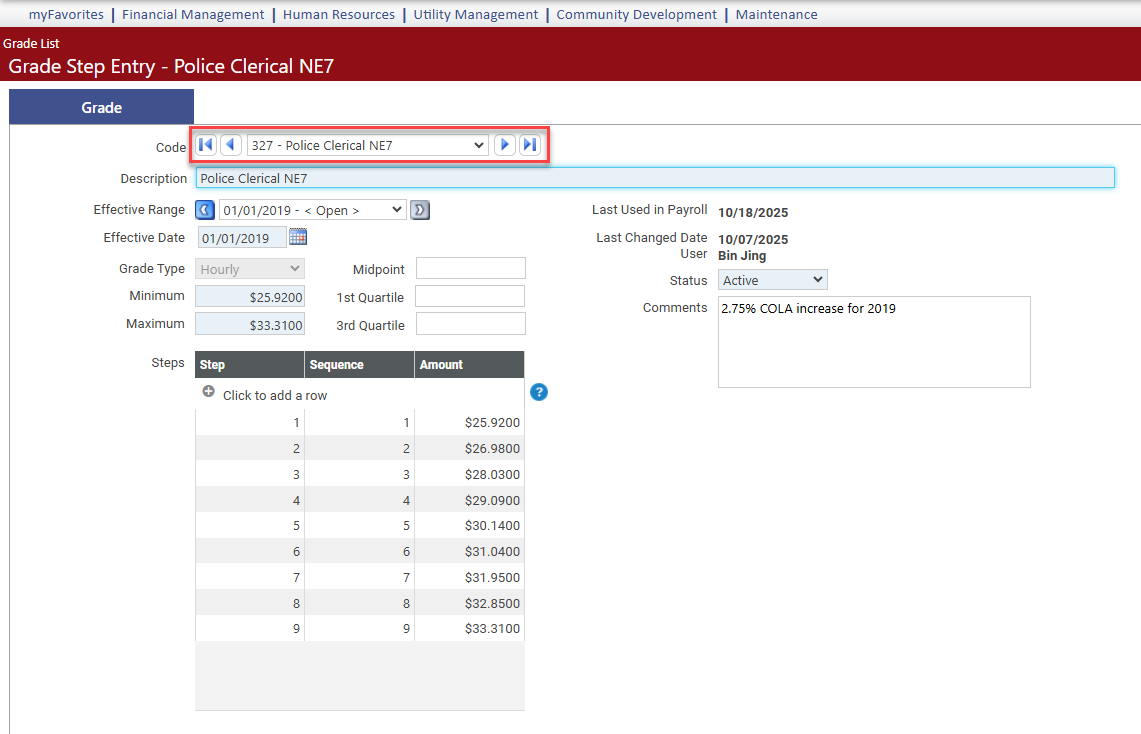 | 2025.1.9 | 11.10.25 | Maintenance-Grades | Code field on Grade Step Entry page changed to dropdown with Previous and Next navigation buttons. |