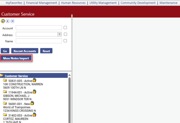 Utility Management > Customer Service > Mass Notes Import