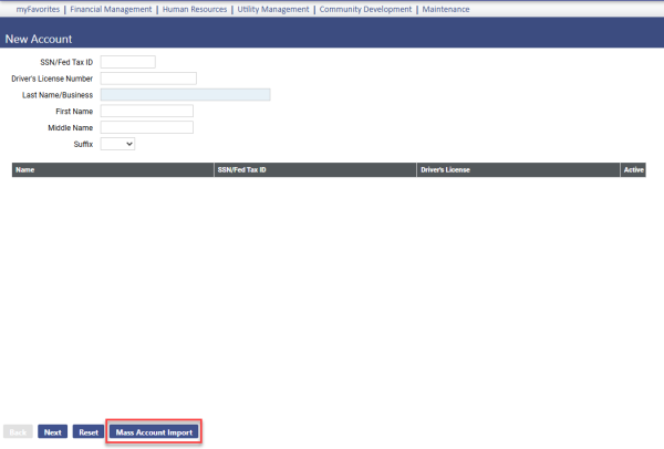 Utility Management > New Account > Mass Account Import