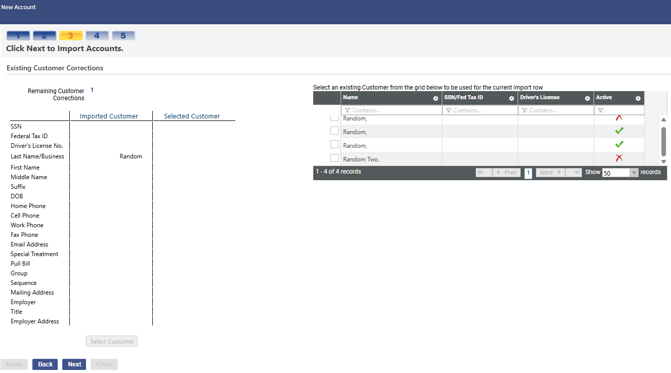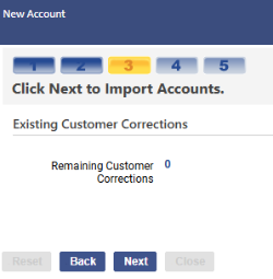 For every account with Use Existing Customer set to TRUE in the import file, continue to mark the applicable customer until the Remaining Customer Corrections shows a 0: